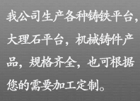 自從05年和我公司合作了感覺很好,我公司生產(chǎn)的劃線平臺,焊接平臺,T型槽平臺,鉚焊平臺,電機(jī)試驗(yàn)平臺等系列產(chǎn)品,是用于工件、設(shè)備檢測、劃線、裝配、焊接、組裝、鉚焊的平面基準(zhǔn)量具。
